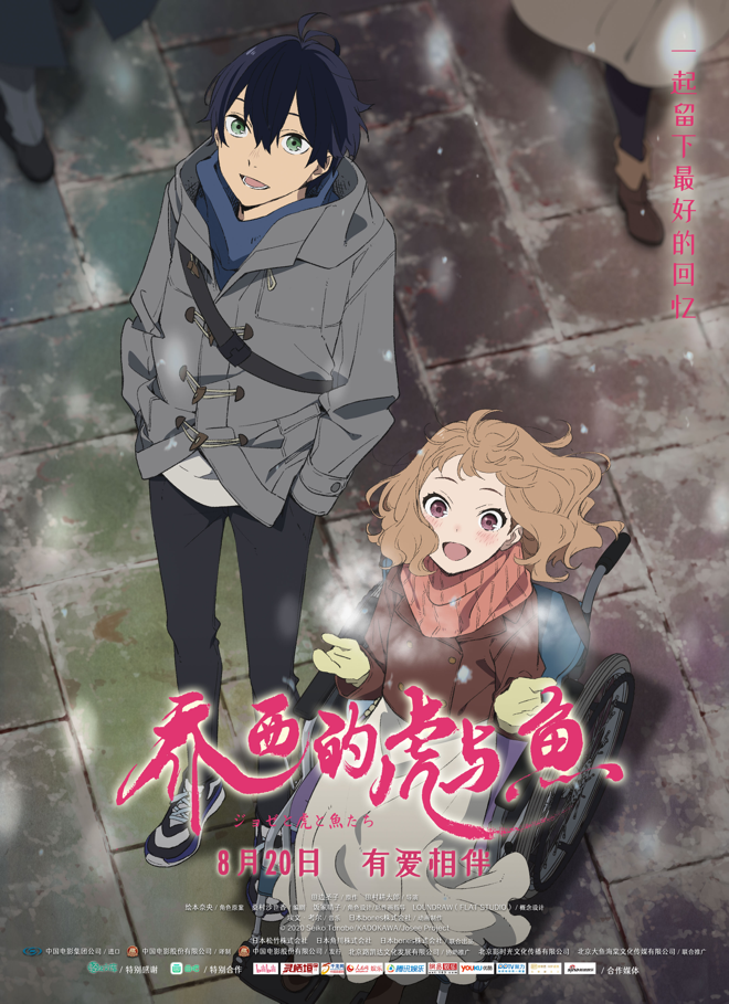 据悉,电影《乔西的虎与鱼》由中国电影集团公司进口,中国电影股份有限公司发行、译制,北京陆凯达文化发展有限公司、北京影时光文化传播有限公司、北京大鱼海棠文化传媒有限公司协助推广,影片即将于8月20日全国上映。